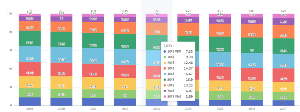 2023.05.30 - [경제경영통계] - 인구 고령화, 노령 인구수, 노년부양비 2020년~2070년 추세보기