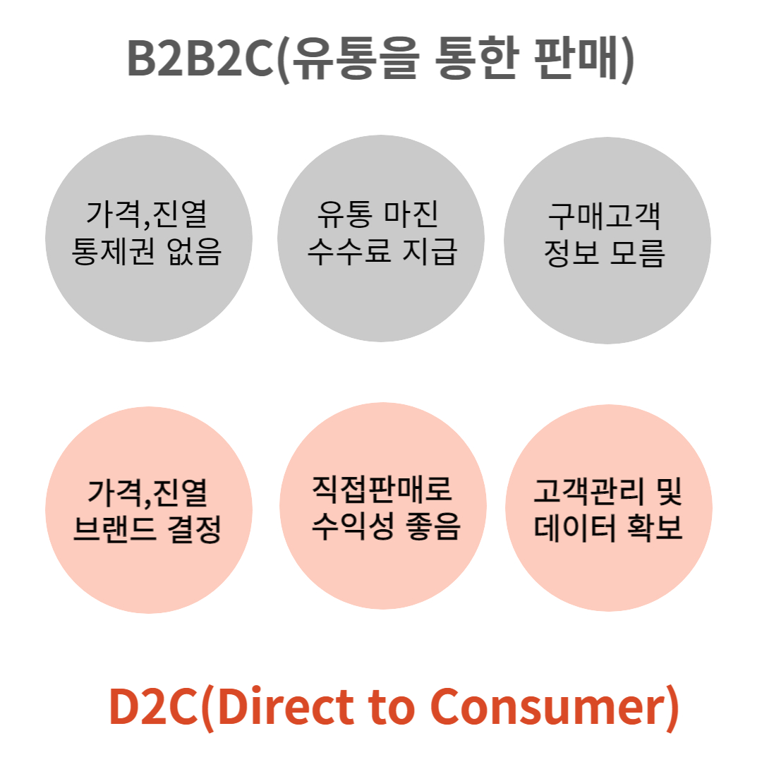 왜 D2C를 해야 하는가.유통 판매와 D2C 판매 비교