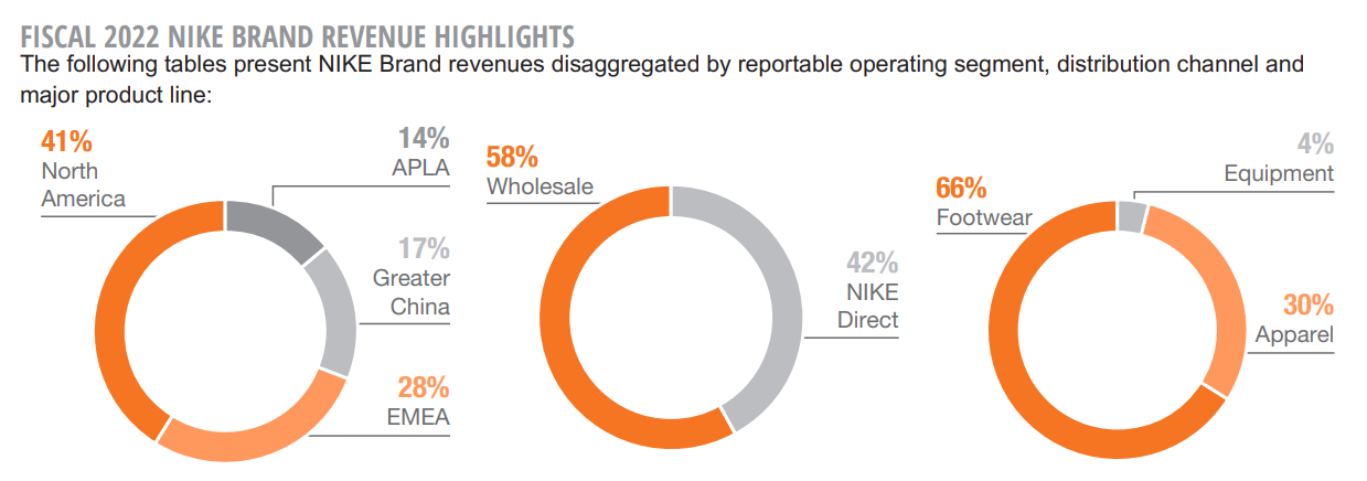 나이키 IR 자료에 의하면 22년 나이키 매출의 42%가 나이키 다이렉트, 즉 온라인과 오프라인 직영몰에서 나왔다.