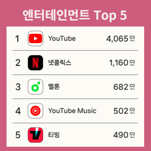 3. 대한민국에서 가장 많이 사용하는 엔터테인먼트앱