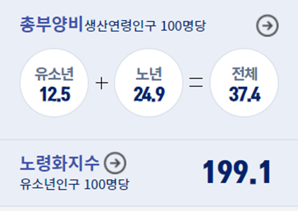 서울시는 유소년 부양비와 노년 부양비를 합해 생산가능 인구 100명당 총 37.4명을 부양하고 있다.