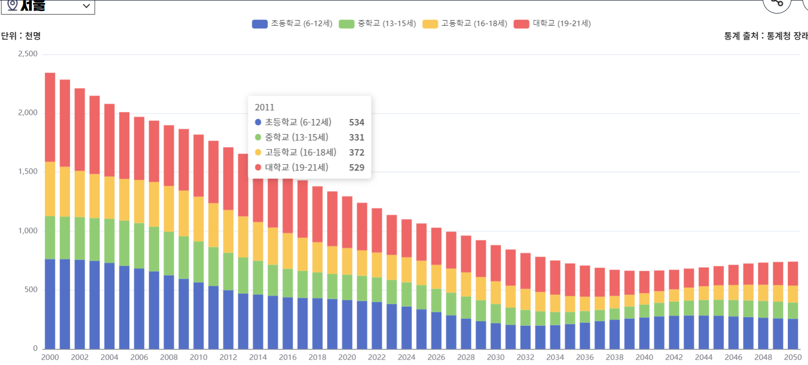 그에따라 서울시의 학령 인구도 급격히 감소하고 있다.