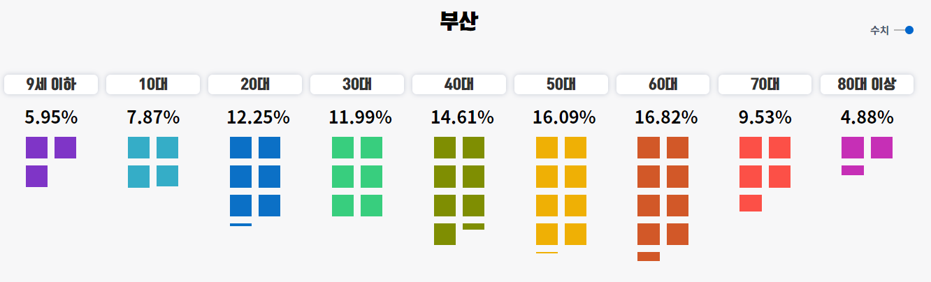 100세 이상                           8,172 0.0%                          1,244 0.0%                          6,928 0.0%