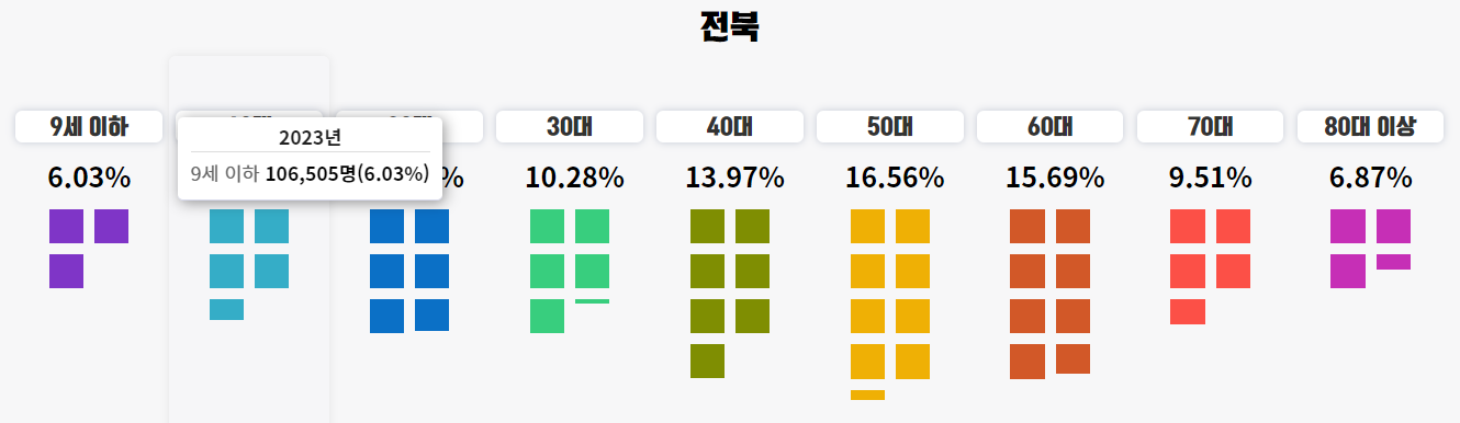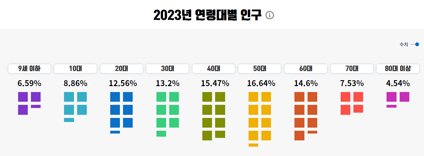 1.2023년 대한민국 연령대별 인구 비중 및 인구수 현황