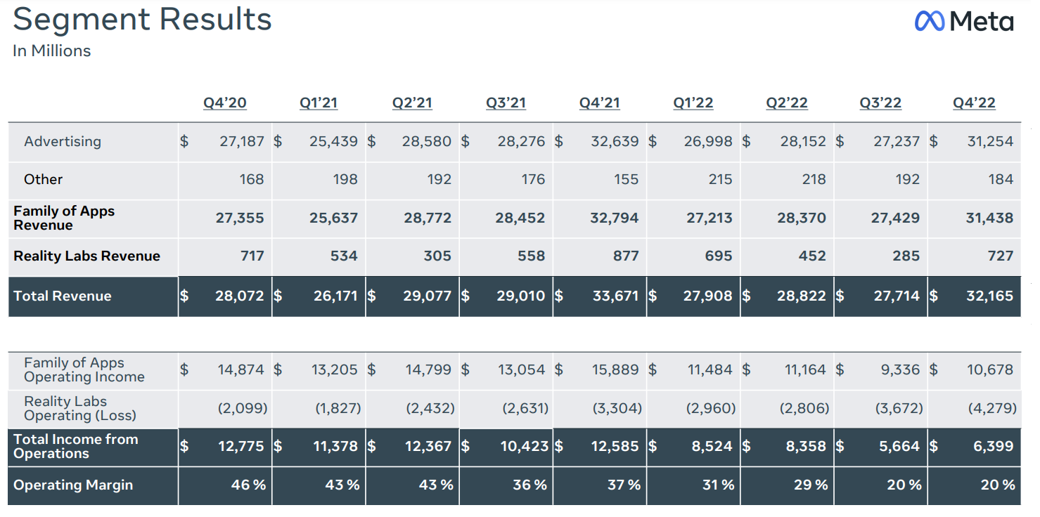 메타의 지난 22년 4분기와 22년 실적을 살펴 보고, 지난 2~3월에 있었던 경영 효율화와 운영비 절감 노력을 감안했을 때 이번 1분기 실적을 예측해 보자.