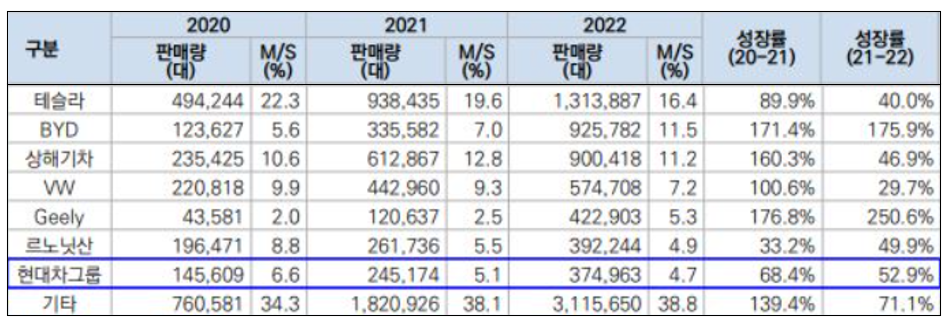 2023.04.22 - [경제경영통계] - 전세계 전기차 판매량, 성장율, 브랜드별 시장점유율