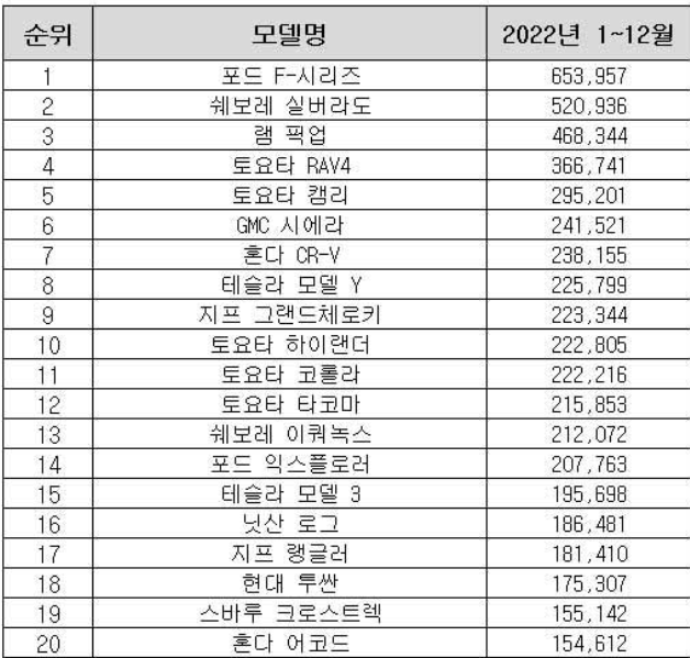 3. 2022년 전세계에서 가장 많이 판매된 모델 Top10