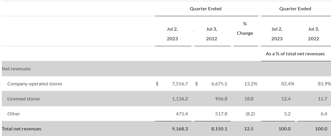 - 3분기 동일 매장 기준으로 매출이 전 세계적으로 10% 증가함 : 북미에서 7% 증가, 인터내셔널 24% 증가