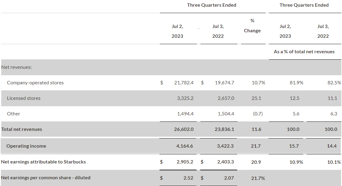 4. 스타벅스 재무제표 요약 (23년 3분기 누적)