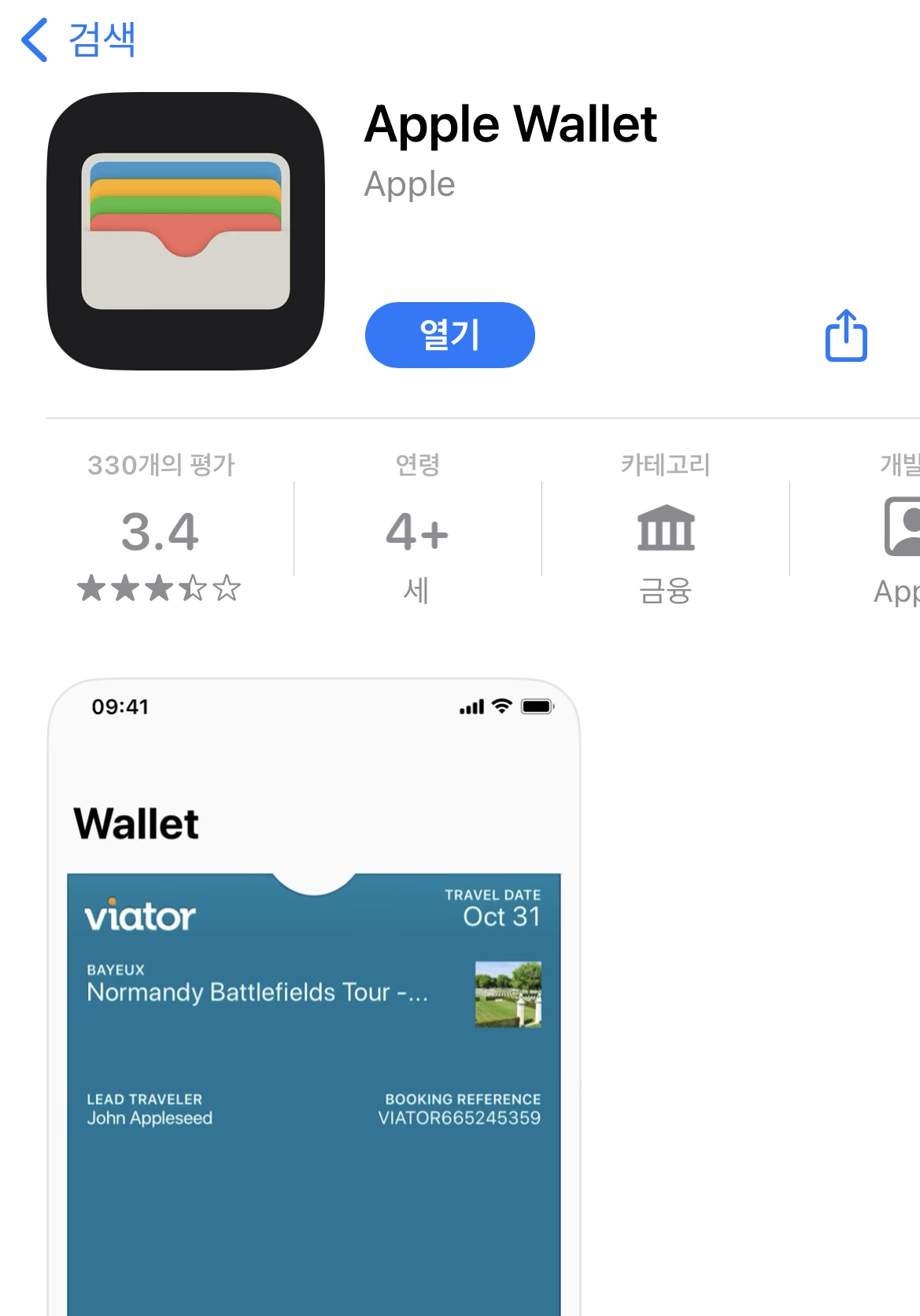 애플 앱스토어에 지갑이라고 입력하면 애플의 기본 지갑앱이 나온다.