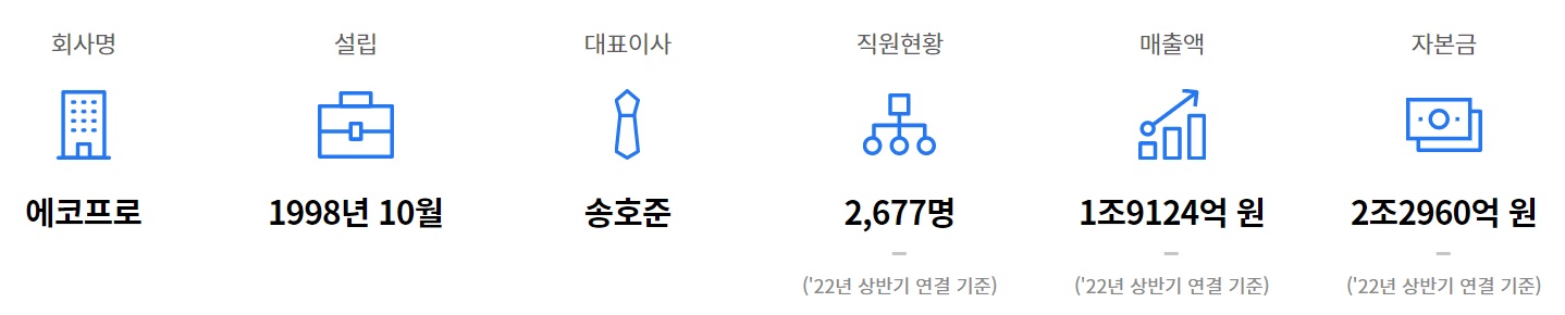 에코프로는 1998년 설립된 회사로 배터리 소재 전문 기업입니다.