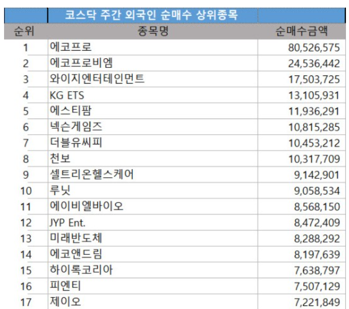 지난 1주일간 코스닥에서의 외국인의 주식 매수 상위를 기록한 것도 에코프로와 에코프로비엠이다.