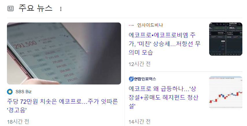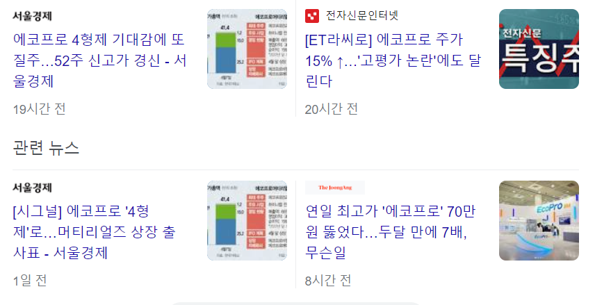 어제 4/10일의 급등으로 에코프로 관련한 주가 상승 경고음 기사가 많이 늘었습니다.