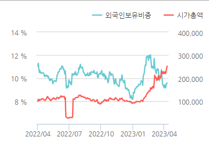 그리고 외국인의 주식보유율도 6.99%에 달한다. 그만큼 한국에서 뿐 아니라 외국인들도 매집중이다.