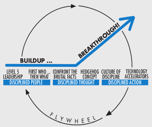 짐 콜린스는 그의 책 Good to Great에서 '좋은 것은 위대한 것의 적'이라고 한다. 크고 거대해지고 위대해지기 위해서는 플라이휠을 생성해야 한다. 그리고 규율이 있는 사람들과 규율있는 사고, 규율있는 행동이 위대한 기업을 만든다고 했다.