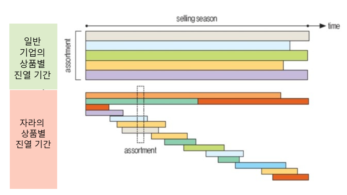 자라와 일반 패션기업의 시즌 상품 진열 기간 비교