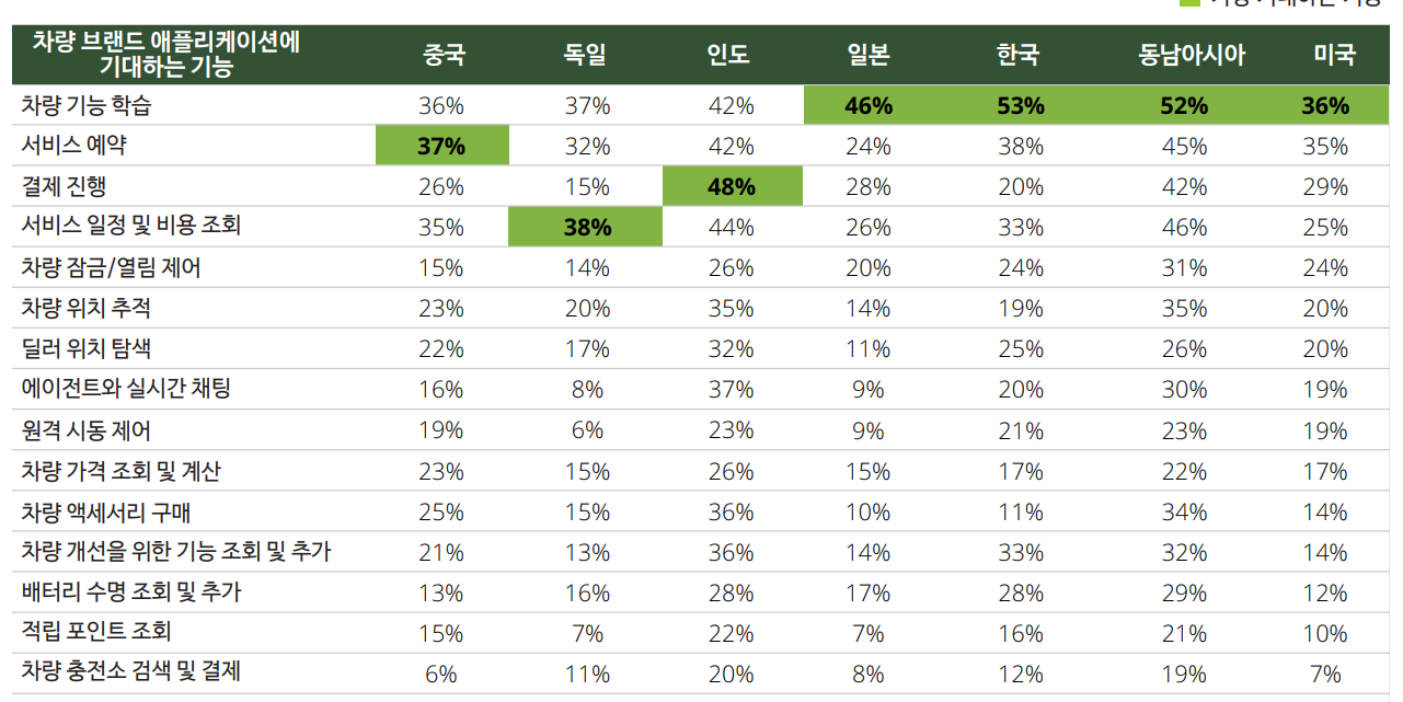 서비스 예약 기능이나, 결제, 서비스 일정 및 비용 조회 등 차량 관련 애플리케이션 기능에 대해 높은 선호를 보였다.