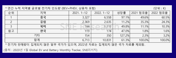 참고로 한국은 17.4만대 판매로 전년비 47% 성장했으며, 이는 전세계 전기차 시장 판매량의 1.6%다.
