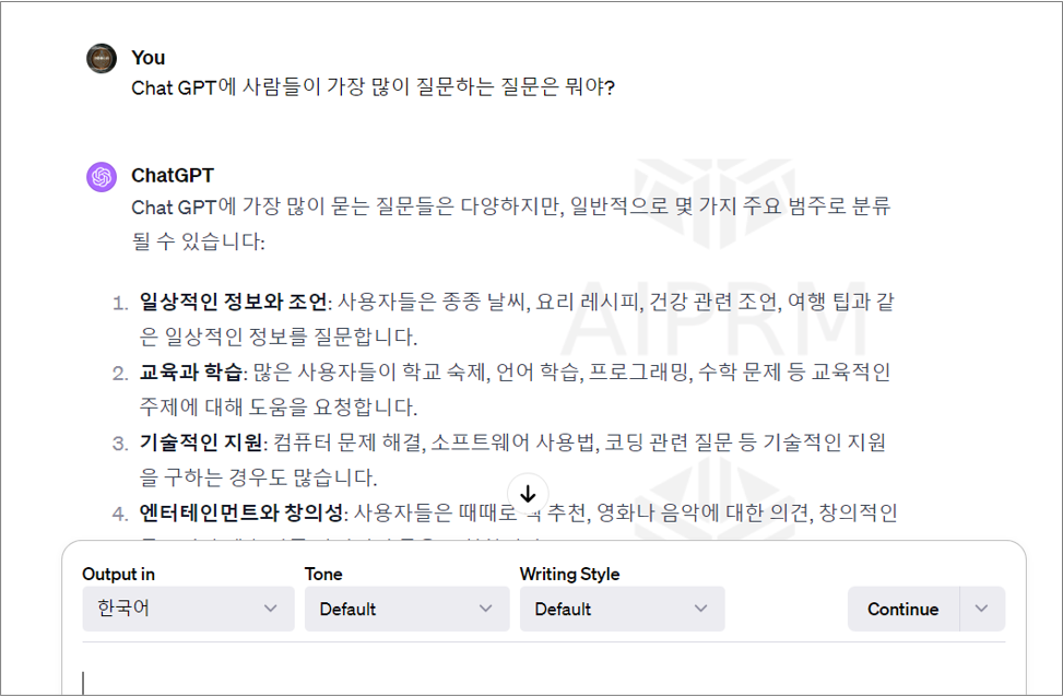 저는 한번 chat gpt에게 사람들이 chat gpt에 들어와서 가장 많이 질문하는 질문이 무엇인지 물어봤습니다. 아래 답변 보이시나요?