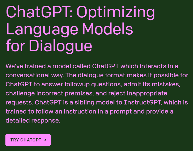 챗GPT가 기존의 AI와 다르게 역대급으로 세상을 놀라게 하는 이유는 오픈AI가 챗GPT를 소개하면서 강조한 것처럼 Dialogue, 즉 대화에 있다고 생각한다.
