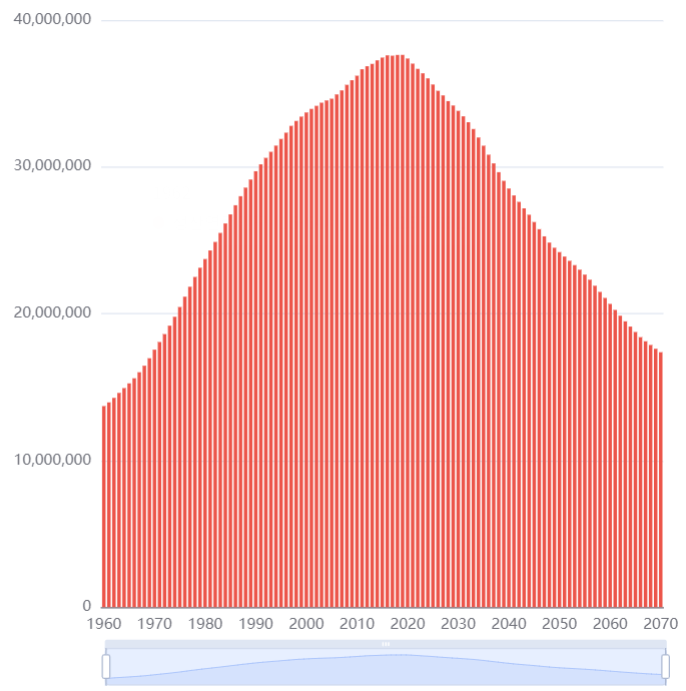 대한민국 생산연령 인구는 이미 정점을 찍고 내려가고 있습니다.