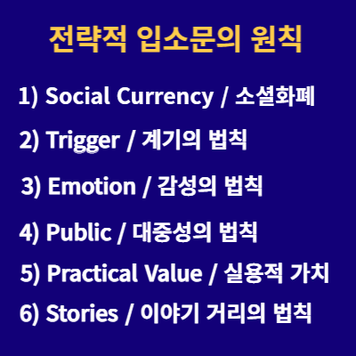 입소문 마케팅 원칙 6가지를 우리는 배웠다.