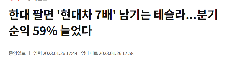 작년 수익을 비교해 보면, 테슬라가 자동차 1대를 팔아 남기는 영업이익이 현대차 7대 판매시 남기는 영업이익과 같았습니다. 기사에 의하면 도요타보다는 2.5배의 영업이익율을 보인다는 기사도 나왔습니다.