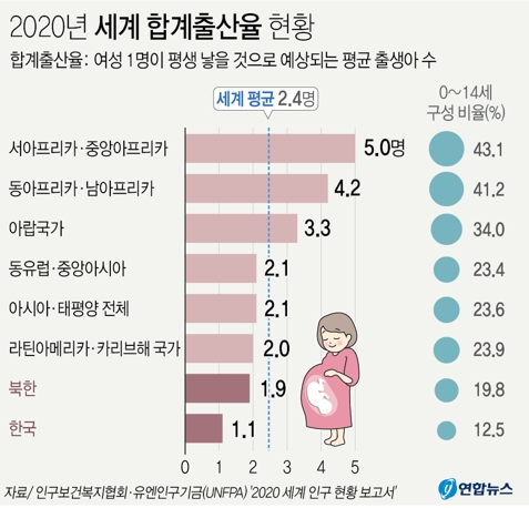 합계 출산율은 가임기 여성이 평생 낳는 자녀수를 가리키는 숫자다.