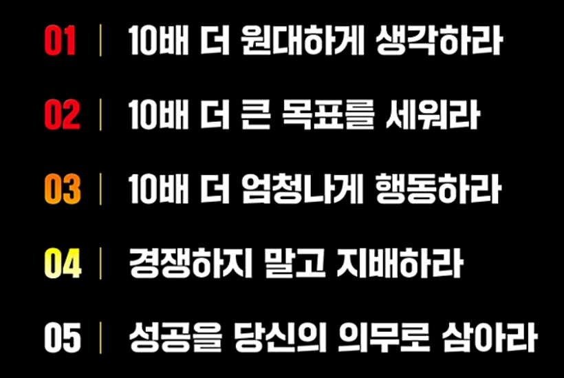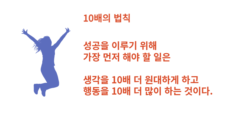 평소보다 10배 더 많은 행동을 하고, 지금 하고 있는 것보다 10배 더 노력하라고 얘기한다.