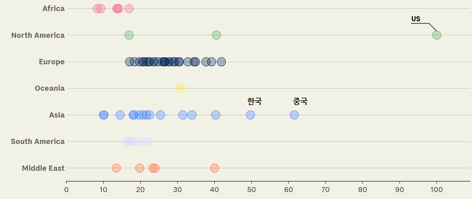 | 1 | 미국 | 100.0 | 100 | 100 | 82.8 | 100 | 100 | 90.3 | 100 |