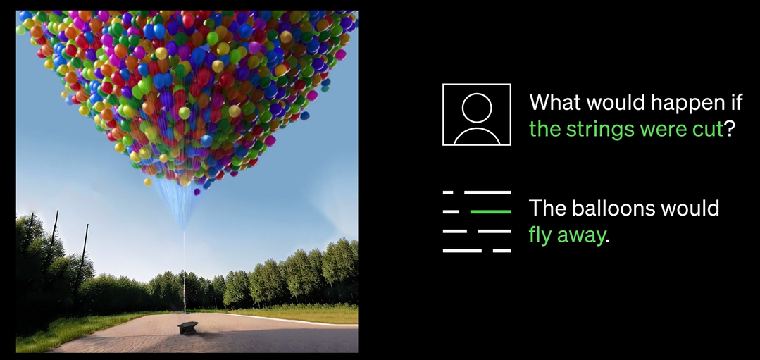 아래와 같이 풍선 사진을 입력한 후 사진의 끈을 자르면 어떻게 될까? 라고 물으니 풍선이 날아갈걸?이라고 대답하는 GPT-4를 볼 수 있다.
