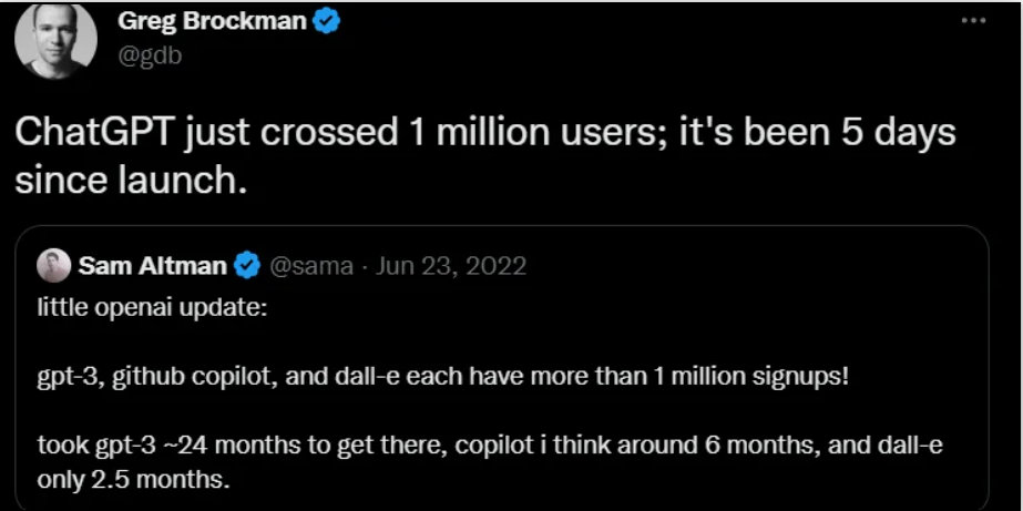 - ChatGPT는 출시 5일 만에 사용자 100만 명을 돌파했다