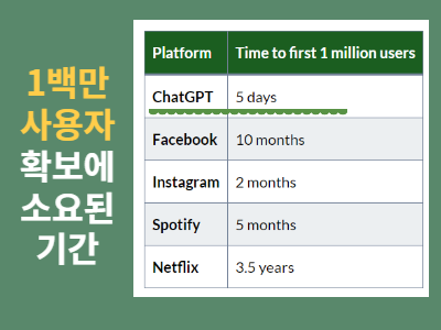 - ChatGPT는 출시 5일 만에 사용자 100만 명을 돌파했다