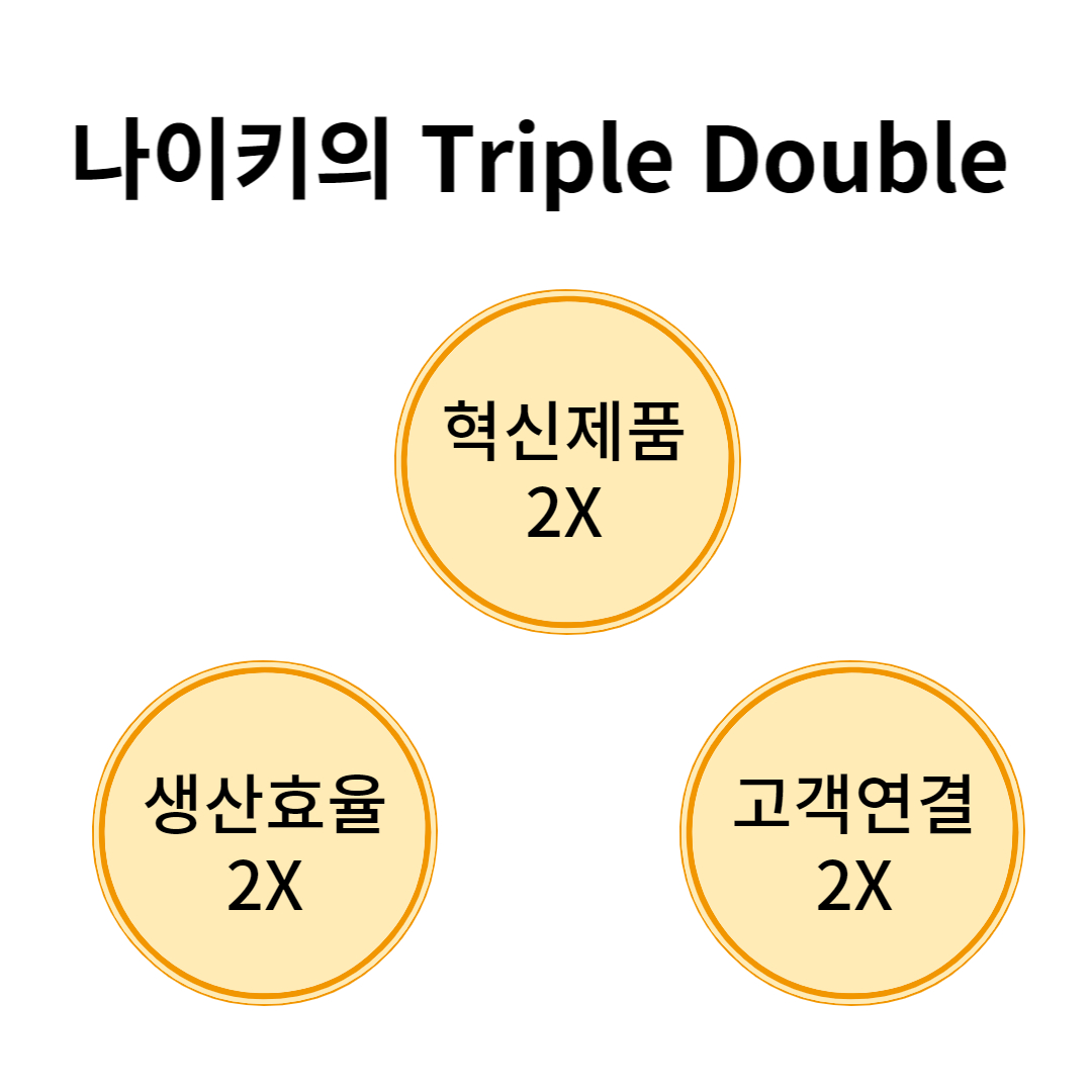 나이키가 발표한 Triple Double 전략, 혁신제품두배, 생산효율 두배, 고객연결 두배